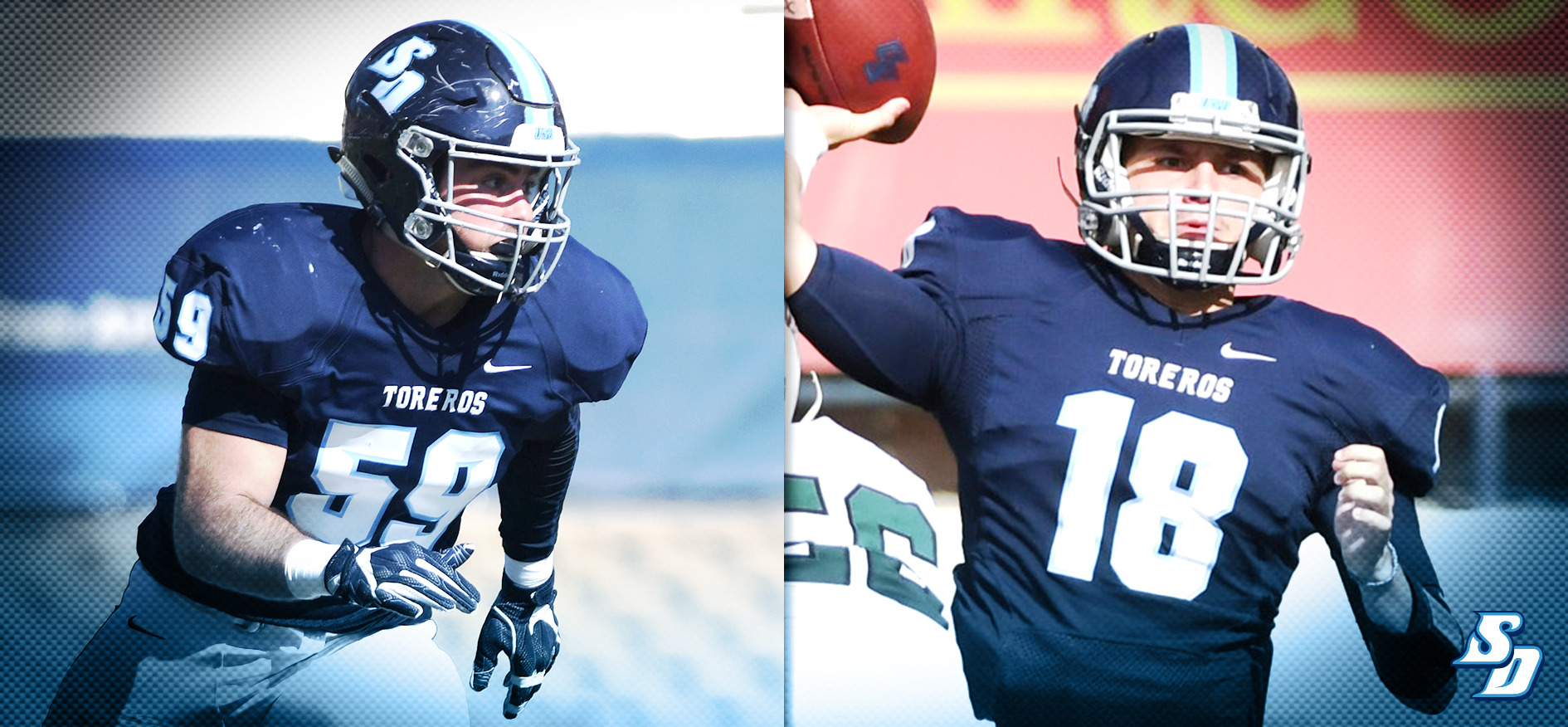 Connor Spencer, Junior, Defensive Tackle - FootballStated Mark Lamoreaux: "Connor is one of the hardest working student-athletes at USD. His leadership both in the weight room and on the field drives him to be the best he can be while pushing others around him to also excel. His commitment to excellence during his training has helped him to excel both on the playing field and in the classroom, receiving honors on the PFL All-Academic and CoSIDA Academic All-District teams, along with All-PFL Honorable Mention accolades."